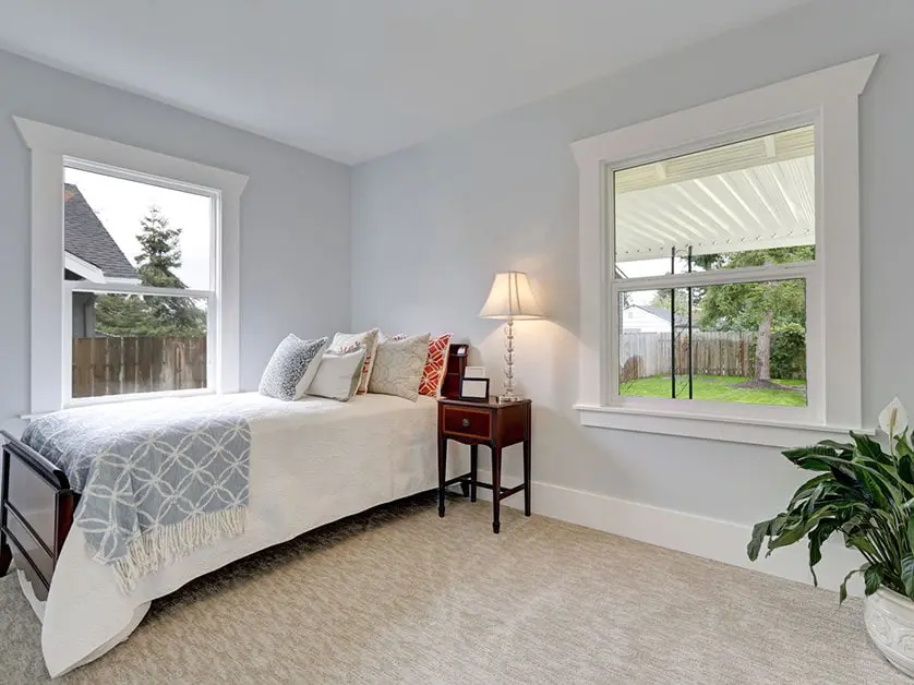 Off-whites and clean whites are among our top picks for small rooms, as they reflect natural light, making spaces feel open and breathable. Think of the sprawling white sand beaches of Fort Myers and how open they feel; that’s the effect a shade like Benjamin Moore’s White Dove can have on your small living room or bedroom. Its ability to not pull yellow or blue undertones makes it the perfect neutral base for any room. Pairing white walls with beachy decor elements, like seagrass rugs or white-washed furniture, can further enhance this airy feel.